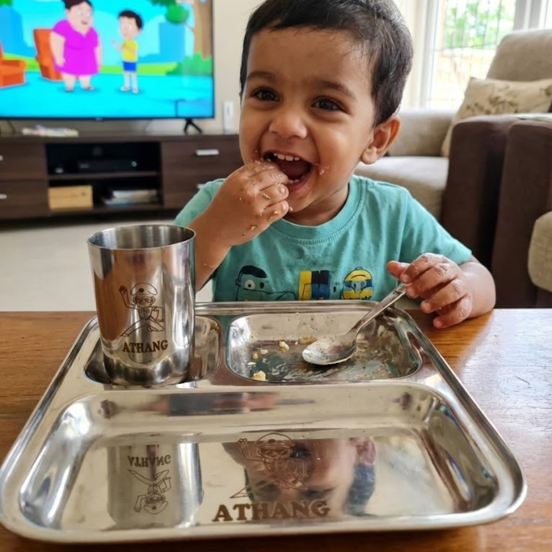 Made from premium 304-Grade Stainless Steel – the same used in surgical equipment. Unlike plastic plates that can leach harmful chemicals when heated, our steel thalis are 100% food-safe, BPA-free, and built to last a lifetime.